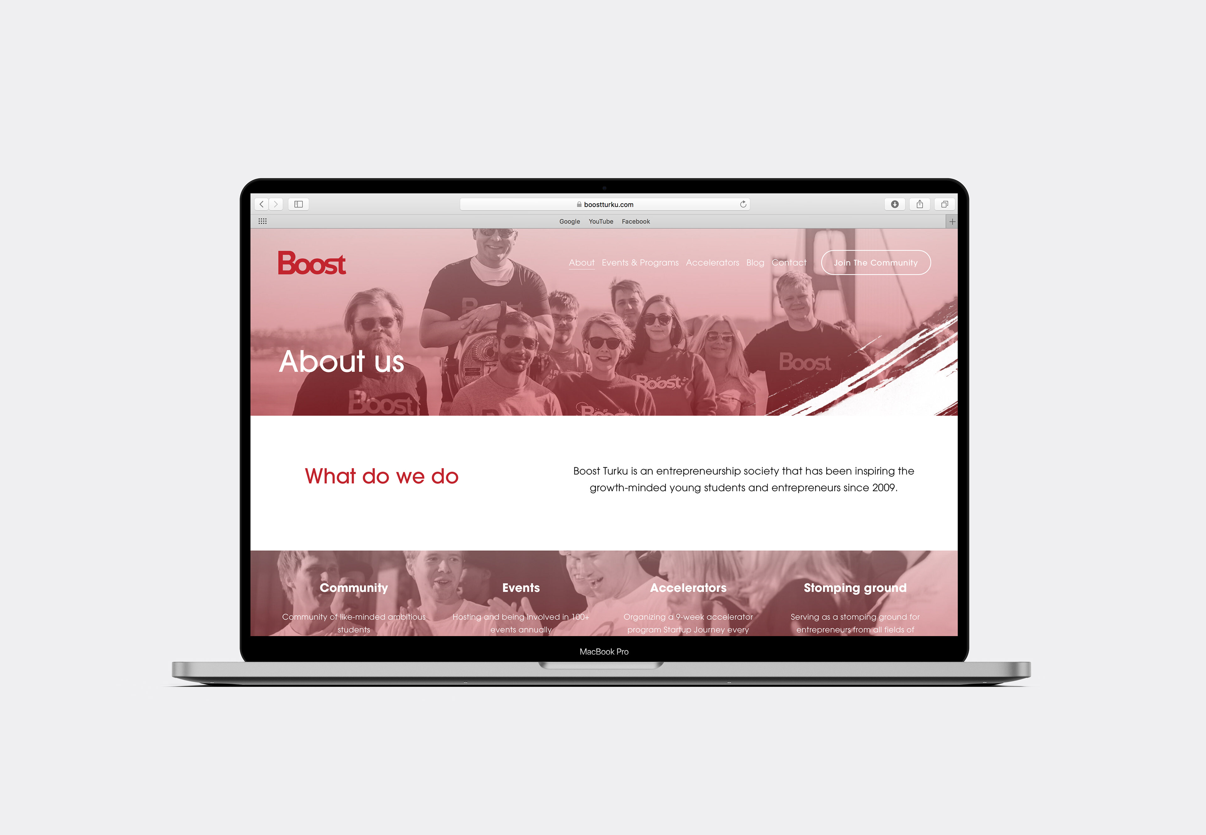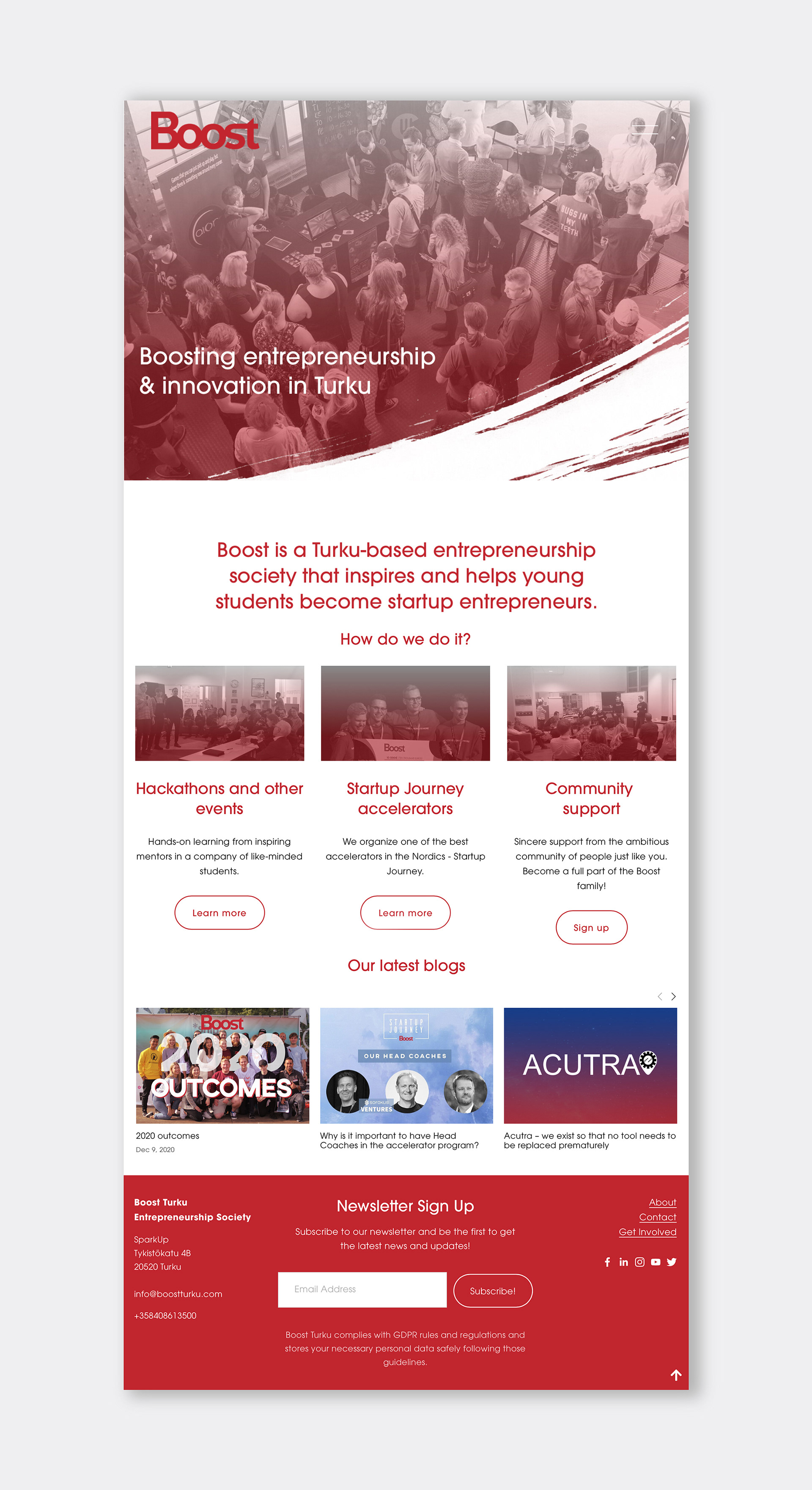During my time at Boost Turku, I was given the task to recreate their website using Squarespace. The aim was to create a more functional and simple layout so that it would be easier for visitors to navigate through it and reach out.