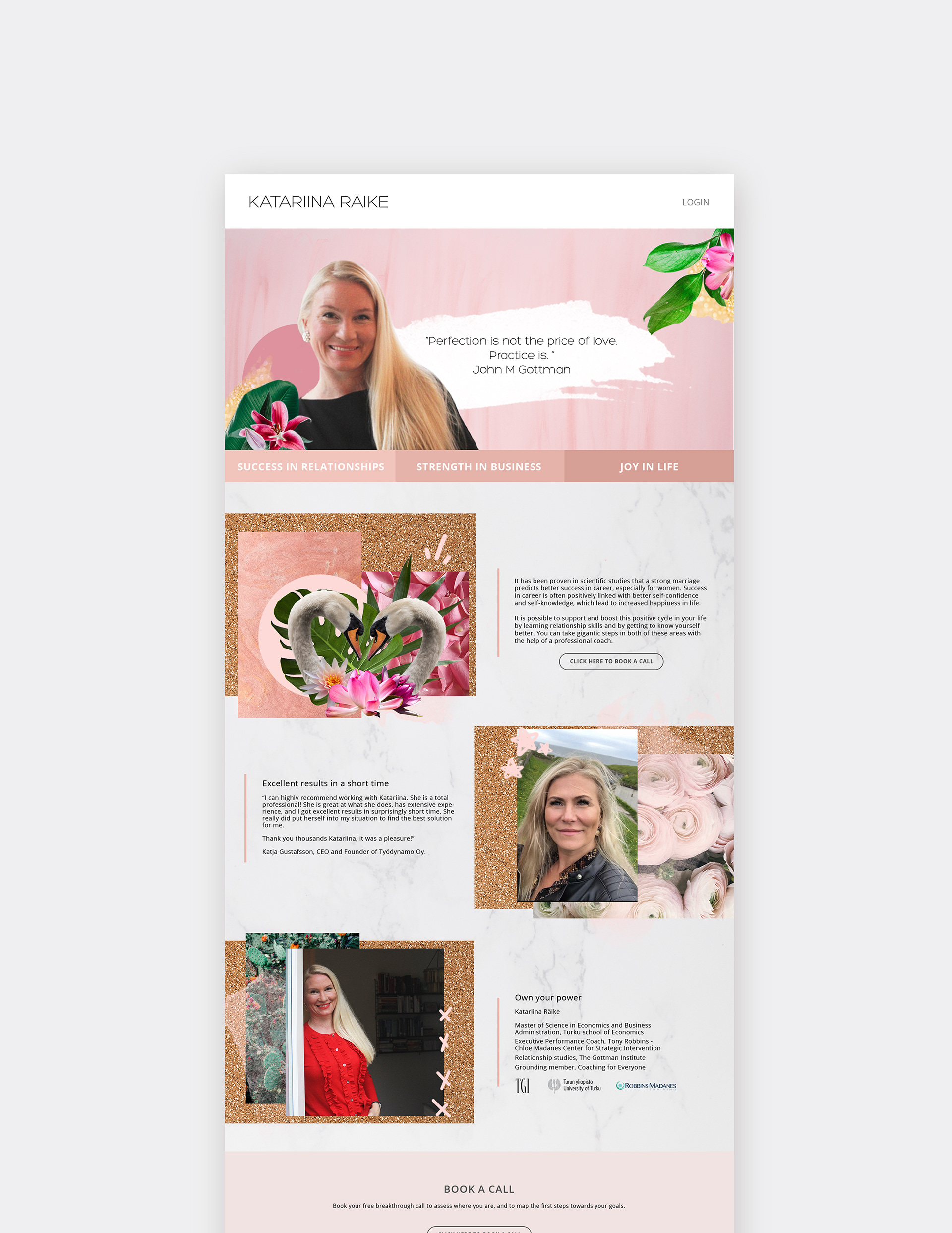 These assets were created for my client to use for her company. I created a website layout as well as a facebook post background and a banner, three icons and also took pictures.
